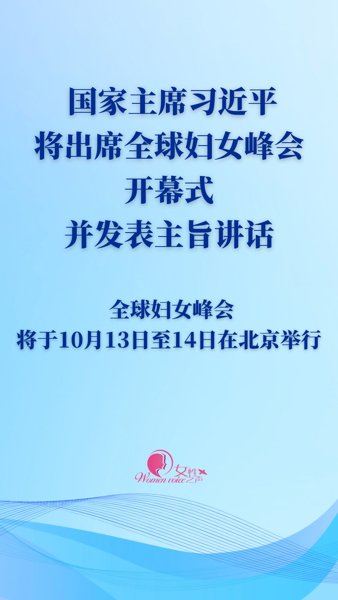 习近平将出席全球妇女峰会开幕式并发表主旨讲话